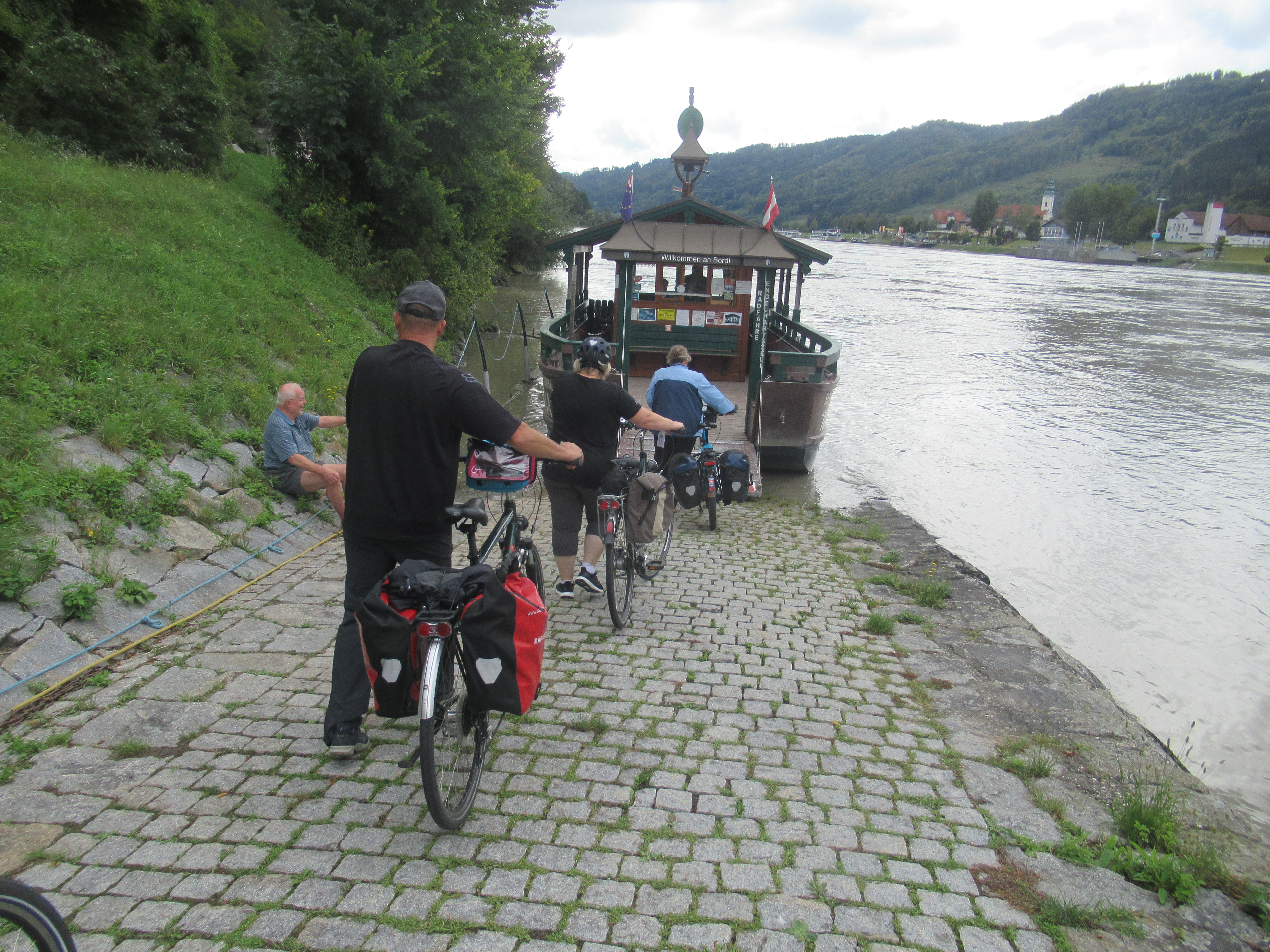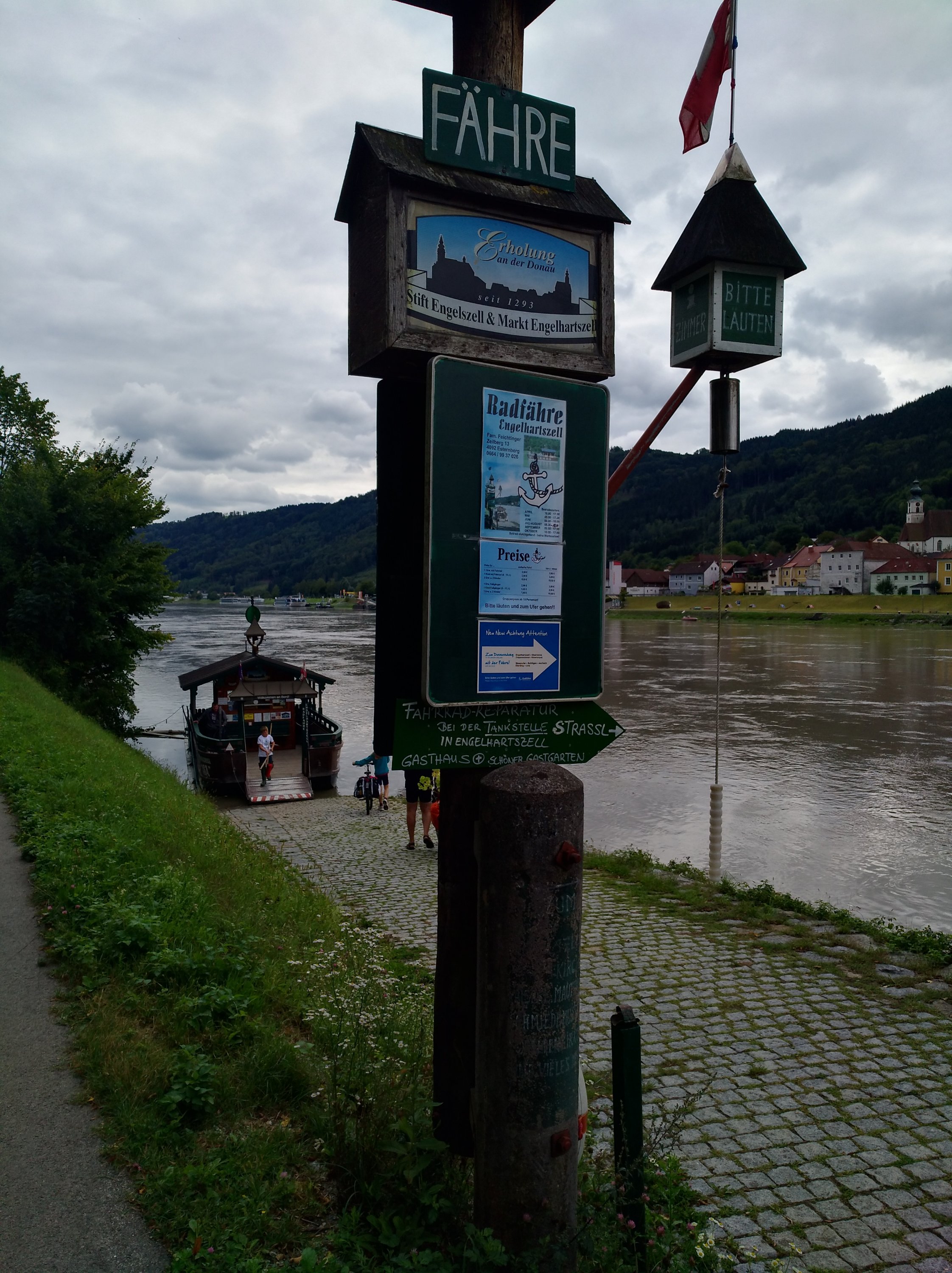 Mit der Radlerfähre gelangen wir nach Mauthausen. Traurige Berühmtheit erlangte der Ort, weil in der Nähe ein KZ war. Heute ist dort eine Gedenkstätte.