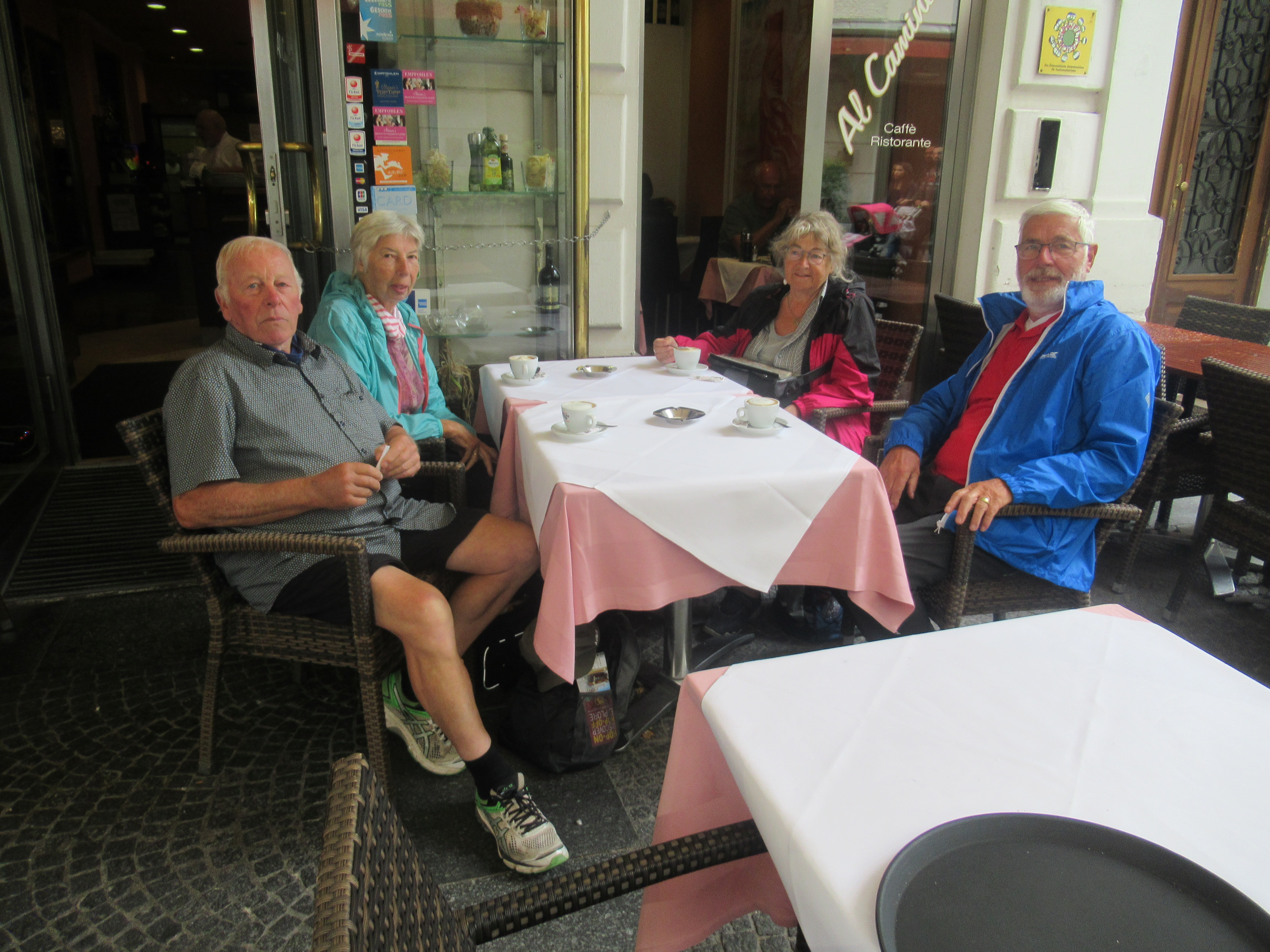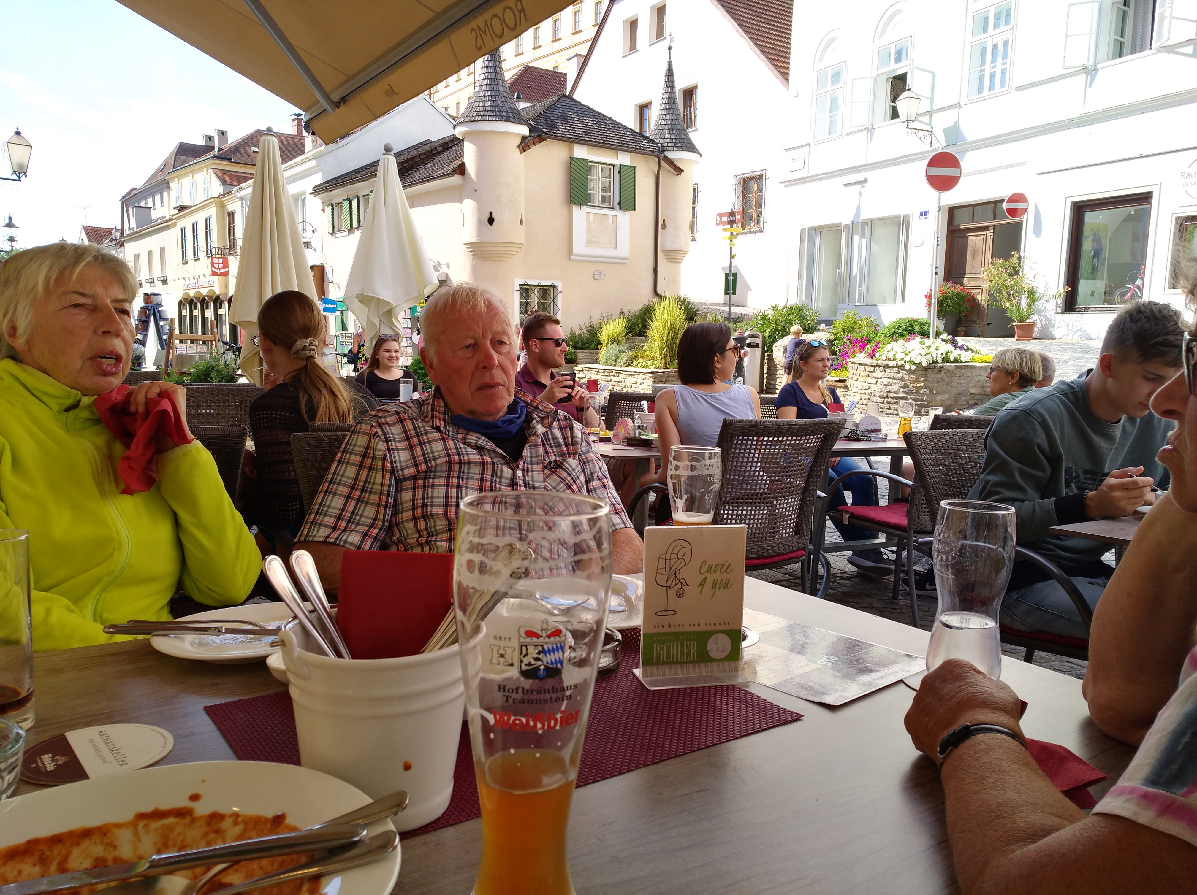 Wieder in der Stadt genießen wir unsere Pause. Dann stellt Rosi fest, dass ihr Geldbeutel nicht mehr da ist, oh Schreck. Rasch eilen Rosi und Manfred die vielen Stufen des Fußweg nach oben um nach dem Geldbeutel zu suchen. Er wurde abgegeben, es fehlt nichts und die Erleichterung ist groß!!!