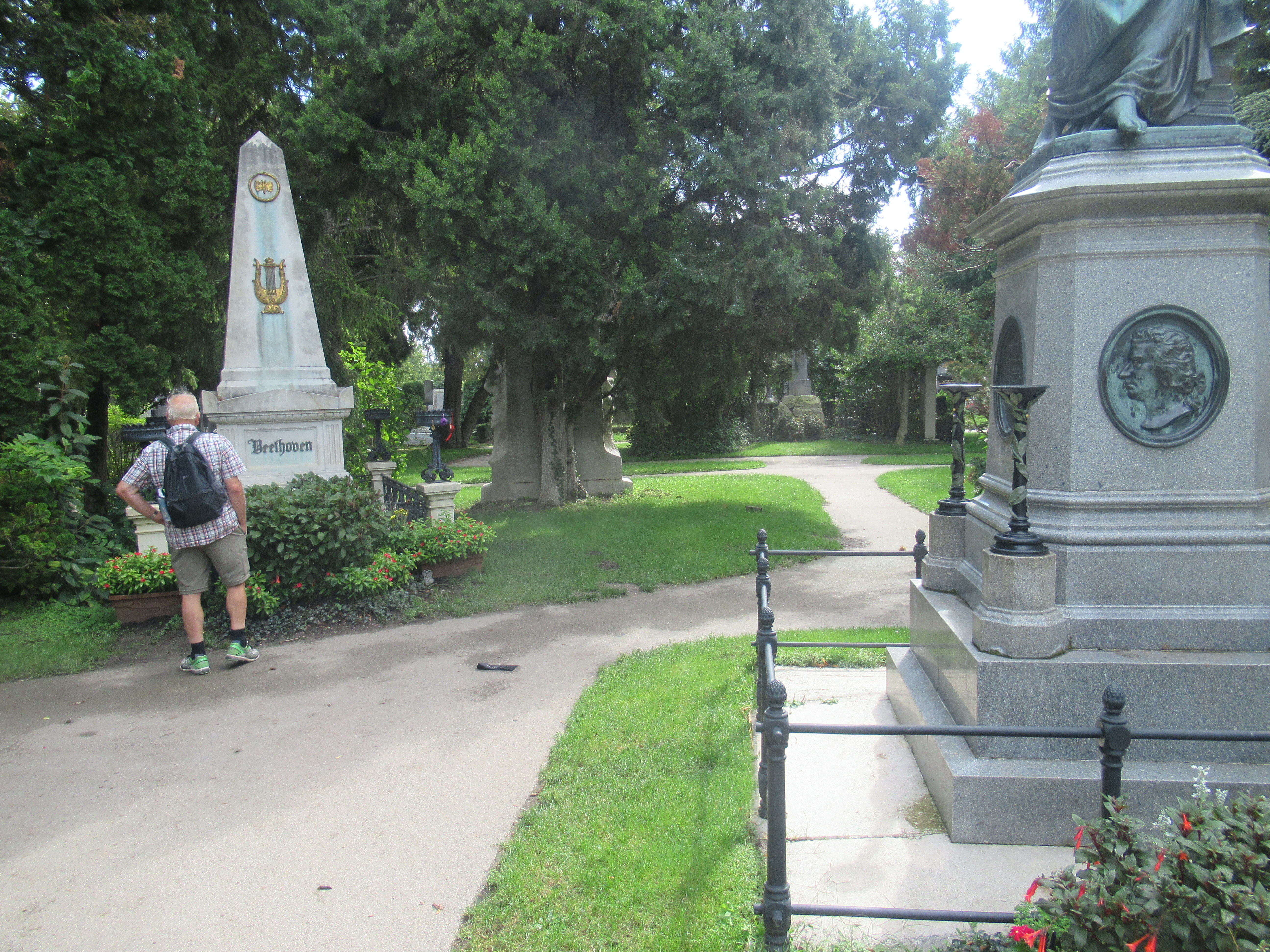 Heute besuchen wir den Zentralfriedhof. Hier liegen die Präsidenten Österreichs, viele Prominente, Künstler, Musiker und die ganz normalen Leute. Einer der größten Friedhofsanlagen Europas. Hier gibt es für jede Religionsgemeinschaft eine eigene Abteilung. Katholisch sowieso, auch alter und neuer jüdischer Teil, die verschiedenen orthodoxen Kirchen, Kopten, Buddhismus, islamisch mit diversen Unterabteilungen, mormonisch und evangelisch!