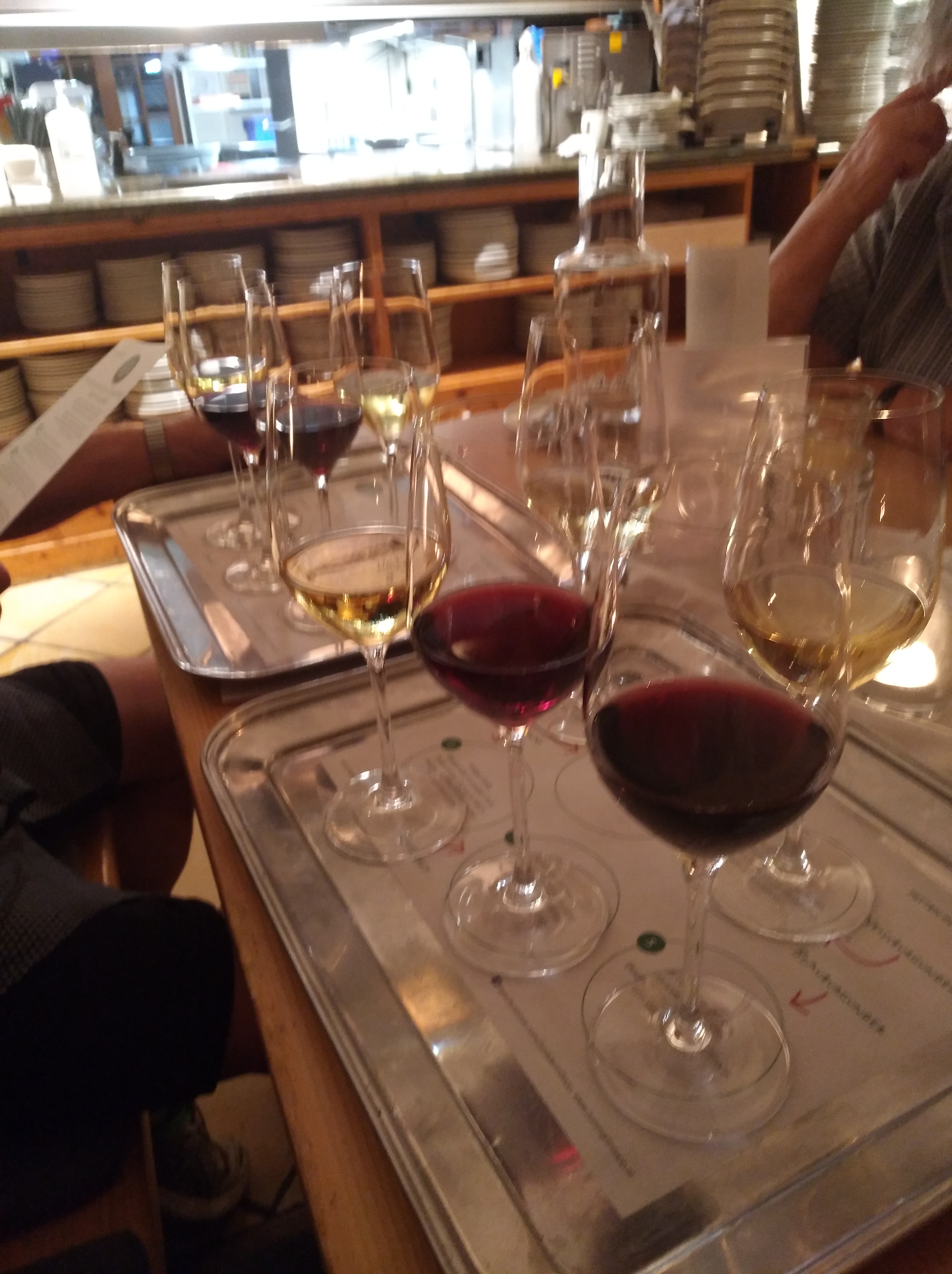 Nach dem Bummel durch die Kärtner Straße, DIE Einkaufsmeile Wiens fahren wir nach Grinzing. Leider ist das Wetter nicht geeignet, um bei Musik und Wein im Biergarten zu sitzen. Dafür finden wir ein Lokal mit Lifemusik, mehr laut als gut. Weiter im Dorf dann endlich das richtige Lokal mit dem Angebot zum Sortenspiel. Fünf verschiedene Weine werden als kleine Weinprobe serviert. Sturm gibt es auch schon (Federweisser), also alles, was die Touris erfreut.