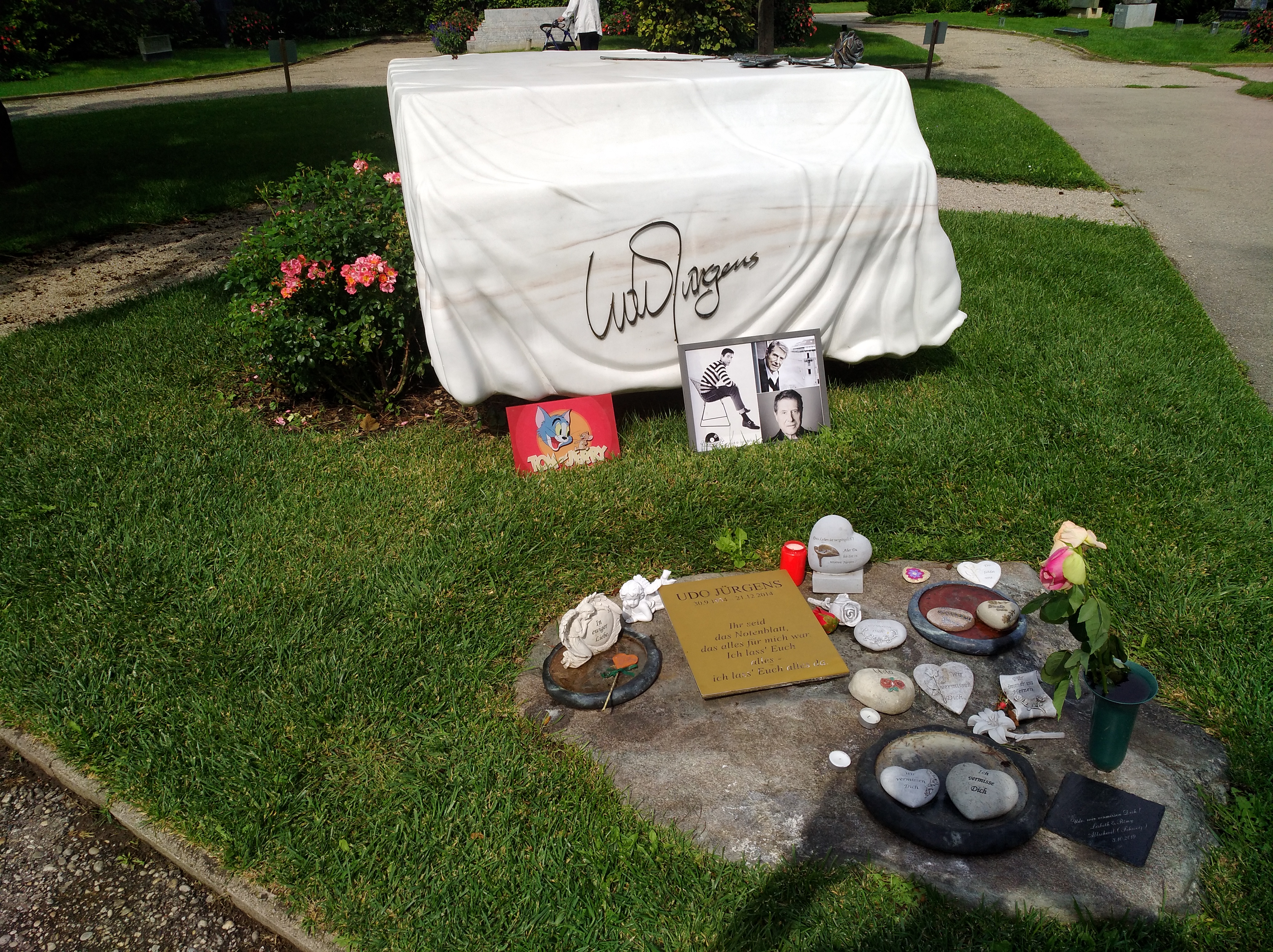 Viele interessante Grabsteine und ebenso interessante Texte gilt es zu entdecken. Das wohl neueste Künstlergrab ziert ein riesiger Flügel aus weißem Marmor…