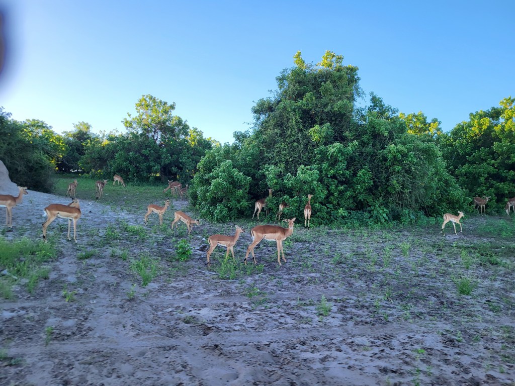 Kejkej unser Fahrer ist ein Meister im Befahren der Sandpisten. Schnell, sehr schnell geht’s es um die Kurven und wir bestaunen den Blick auf den Chobe und seine Auenlandschaft. Wunderschön ist es hier. Ein Fischadler sitzt hoch oben im Baum und wartet auf das Frühstück, welches wohl bald vorbeischwimmt. Impalas werden schon fast nicht mehr fotografiert, es gibt einfach viel zu viele von den wunderschönen Tieren. Auch für die Elefanten gibt es nur einen kurzen Fotostop, eine der Damen kommt ziemlich nahe ans Auto, findet uns jedoch nicht so interessant.