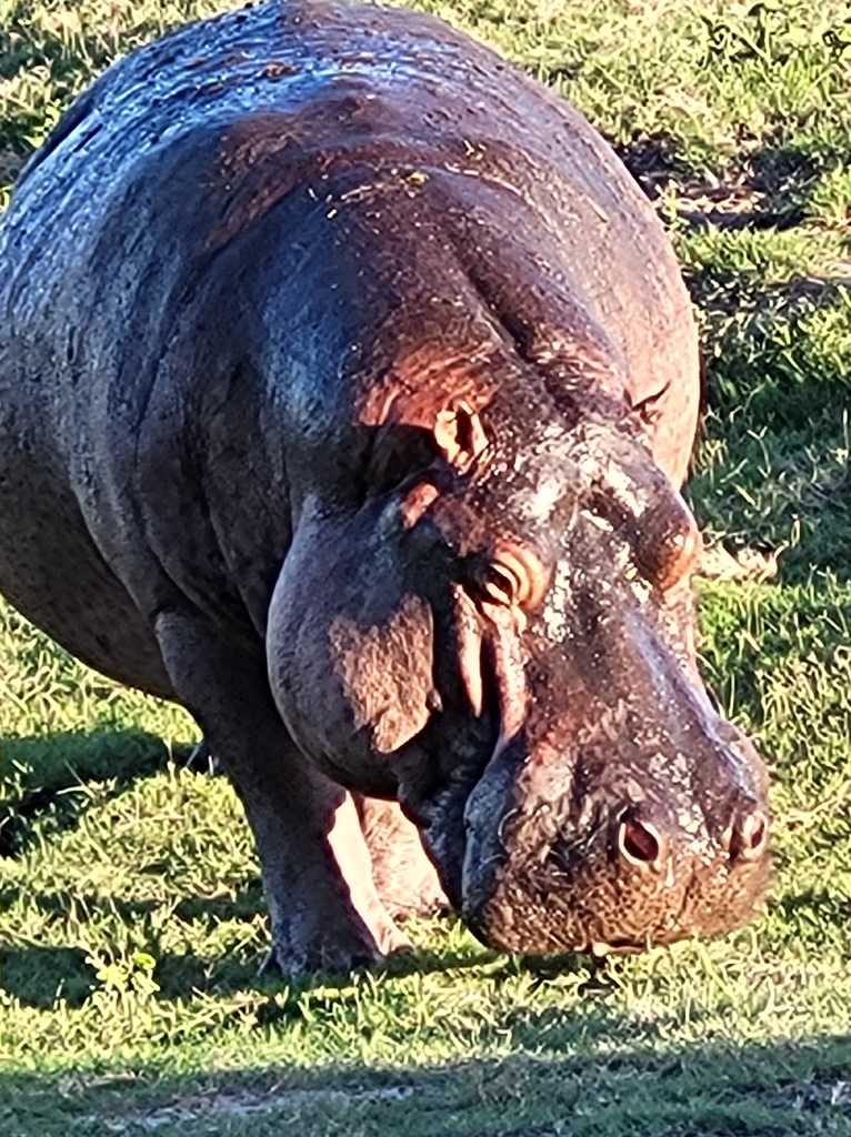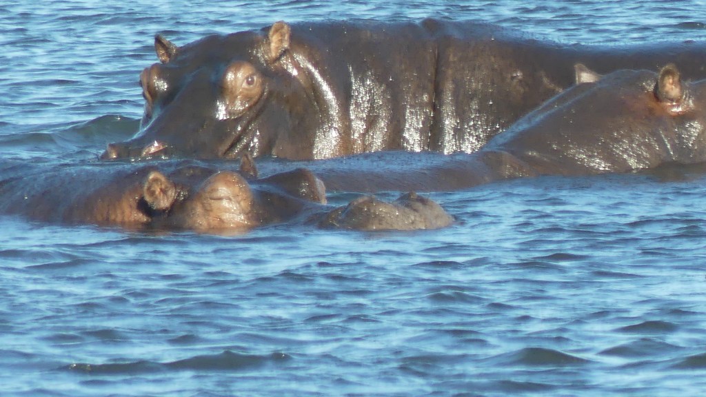Weitere Begeisterung lösen dann die verschiedenen Hippos aus, die zunächst nur als braune Erhebungen auf dem Wasser zu sehen sind. Fünf bis sechs Minuten lang können sie unter Wasser bleiben, die niedlichen Öhrchen sowie die Nasenlöcher schließen sich automatisch beim Abtauchen. Sie bieten uns ein bischen Programm, alle sind begeistert und die Apparate klicken heftig.