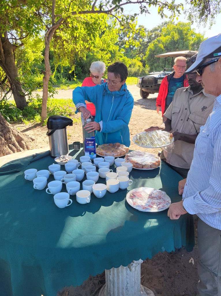 Nach der Bedürfnispause mit Kaffee und Tee suchen wir weiter nach dem Kick mit einem besonderen Tier – es geht durch Sandpisten – aber heute findet sich nichts mehr aufregendes. Perlhühner, Warzenschweine, Giraffen….., ein Elefantenkadaver, schon ziemlich abgenagt ist die „Beute“ des heutigen Vormittags.