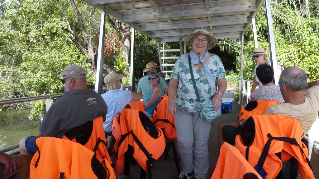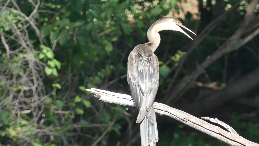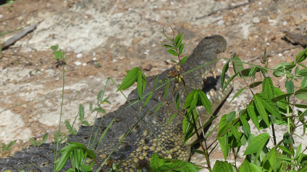 Zunächst gibt es ein paar schöne Vögelchen und, ohhhh ein Krokodil am Ufer mit aufgesperrtem Maul auf vorbeilaufendes Futter wartend. Immer schön hin und her kreuzend entdecken wir noch zwei Krokodile in unterschiedlichen Größen und sind begeistert.
