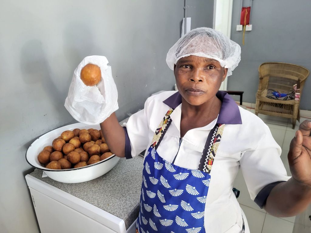 In Pandamatenga würden wir gerne einkehren, leider gibt es nur eine Tankstelle mit Minishop ohne Kaffee. Dafür so eine Art Berliner, ein Hefegebäck, frisch, noch warm und lecker. (Es ist ja Kreppelzeit in Deutschland;)