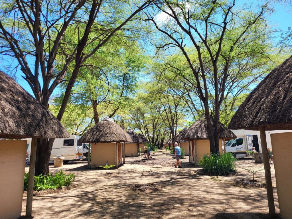 Wir sind für drei Nächte in der Kasane Big Five Chobe Lodge. Eine sehr feine Lodge, jeder Stellplatz hat ein eigenes Sanitärhäuschen mit Dusche, WC, Waschplatz, Mülleimer und die sanitären Einrichtungen werden jeden Tag geputzt, welch ein Luxus.
