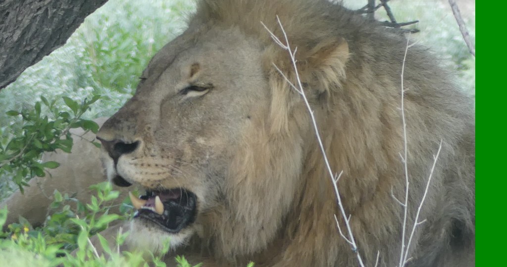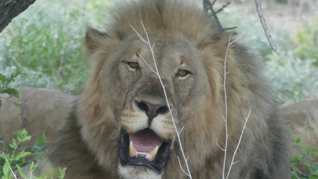 Die beiden Löwen, die gestern das Zebra verspeist haben sind noch satt und liegen unter genau dem gleichen Baum, beobachten gelangweilt die vorbeifahrenden Autos und legen sich dann gemütlich zum Ausruhen hin. Boah eh, es ist wirklich so.