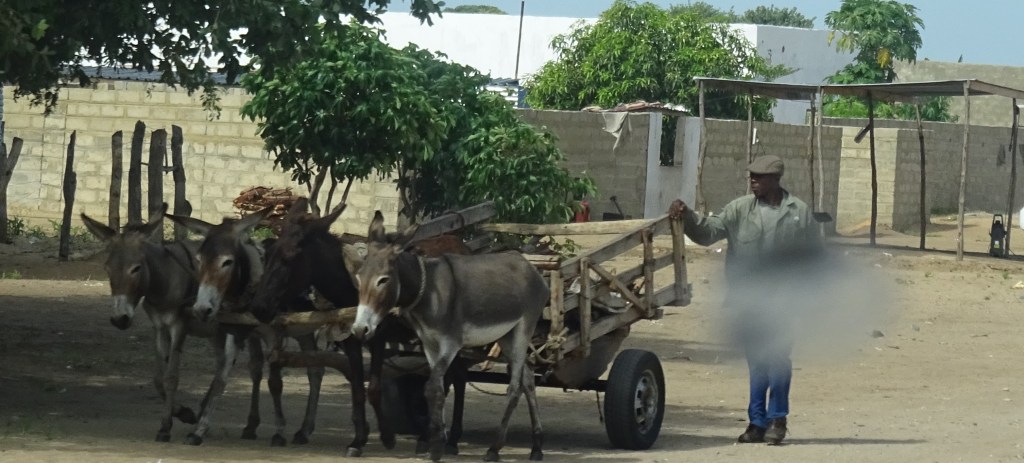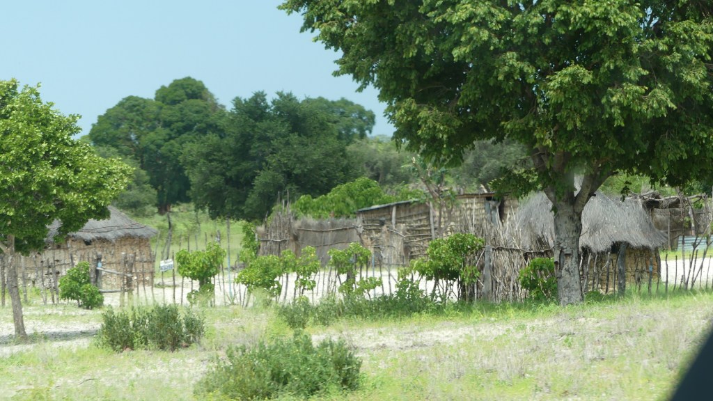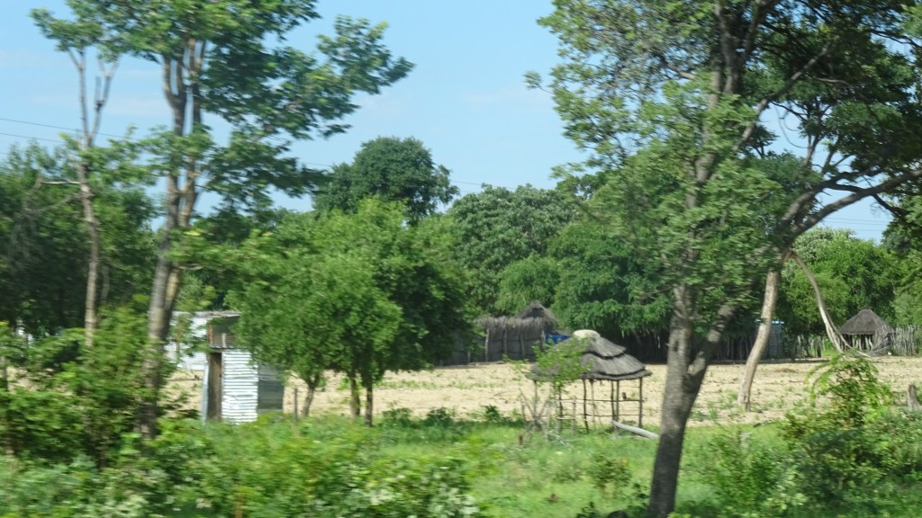Ab und zu mal ein paar Hütten oder eine Ansiedlung hinter den Büschen. Inzwischen sind vielerorts die traditionellen Rundbauten viereckigen Häusern mit Blechdach gewichen. Das erscheint mir als Verlust. Ich stelle mir vor, dass diese Blechhütten sich viel schneller aufheizen und das Schlafen darin kein Vergnügen ist. Im Prinzip werden die umbauten Räume nur zumSchlafen genutzt, das Leben tagsüber findet draußen statt. Gekocht wird draußen, die Toiletten stehen am Rand des eingezäunten Grundstücks. Wenn die Latrine gefüllt ist, wird einfach daneben ein neues Loch gegraben und das Häuschen versetzt.