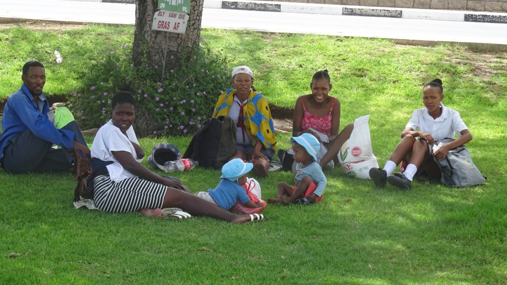 Die Fahrstrecke heute sind mit ca 500 km angegeben und so fahren wir zeitig los. Die Straße ist schnurgerade, langweilig, weil nix passiert. Rechts Wiese, links Wiese, rechts Wiese, links Wiese – ich fühlte mich an die Radtour an der Oder entlang erinnert. In regelmäßigen Abständen sehen wir Schilder, die davor warnen, dass Elefanten, Springböcke, Hyänen und oh Wunder, Menschen die Fahrbahn queren.