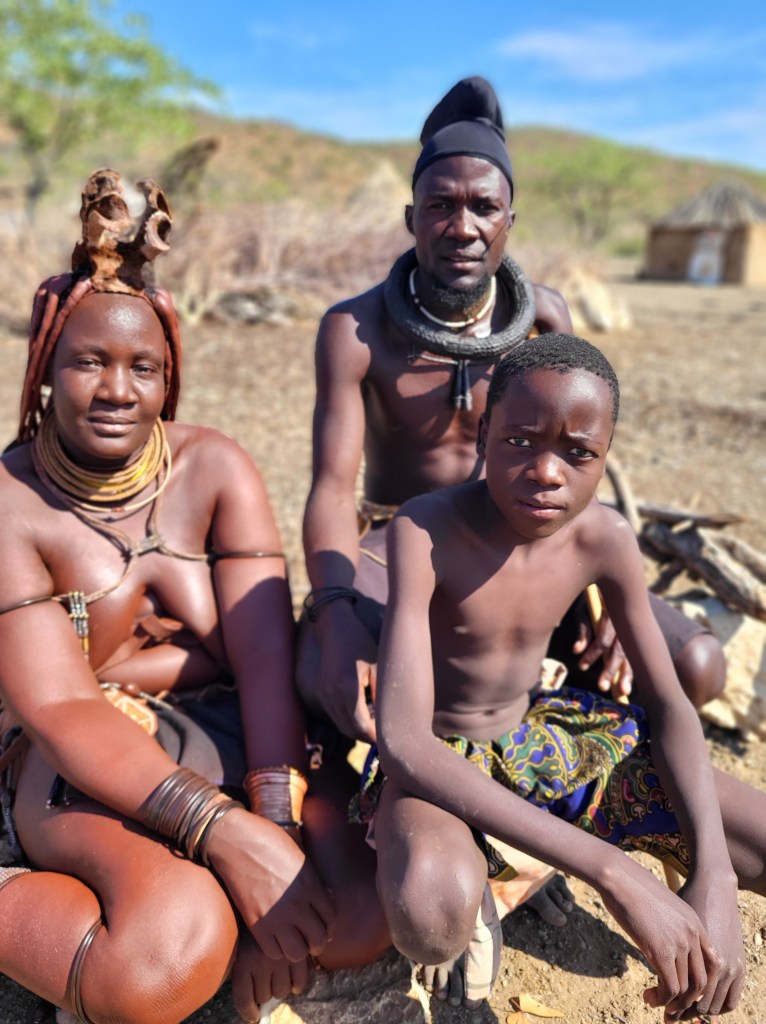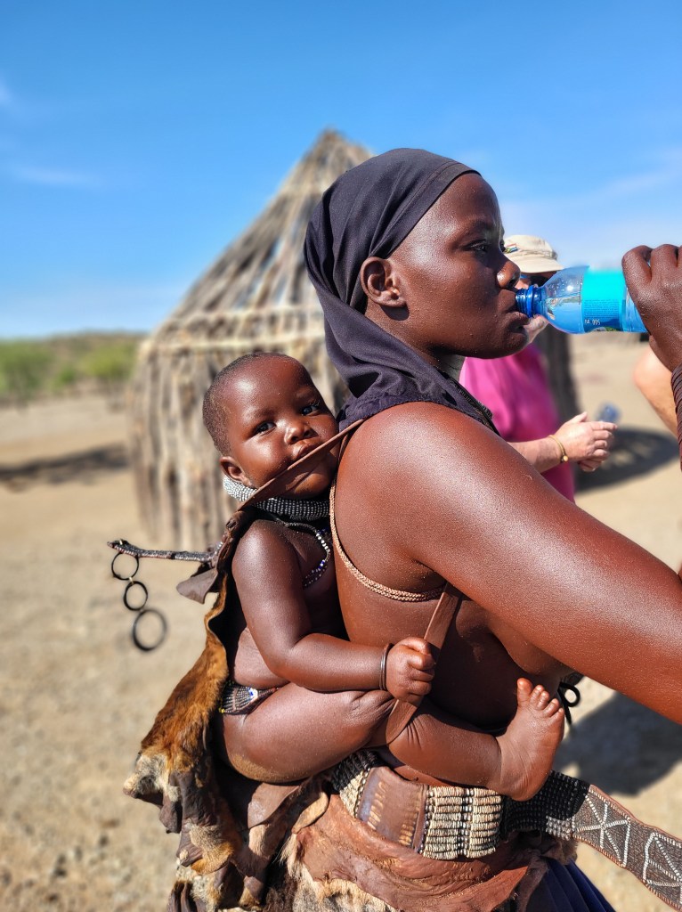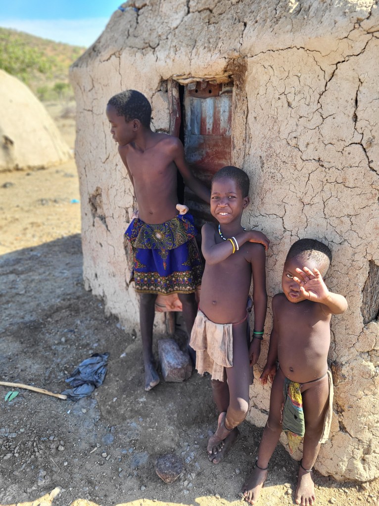 Die Kinder können kostenfrei die Schule besuchen, allerdings gibt es Lehrpersonal, welches dann bestimmt Bücher verlangt und dann haben die Menschen das Problem, dass sie Geld benötigen. Überhaupt ist es ein Vorzeigedorf, um die Kultur der Himbas den Touristen zu zeigen und irgendwie auch zu Geld zu kommen. Lebensmittel gibt es halt ebenfalls nicht kostenlos. Hühner, Ziegen und der Preis für eine Frau (1 Kuh) reichen nicht.
