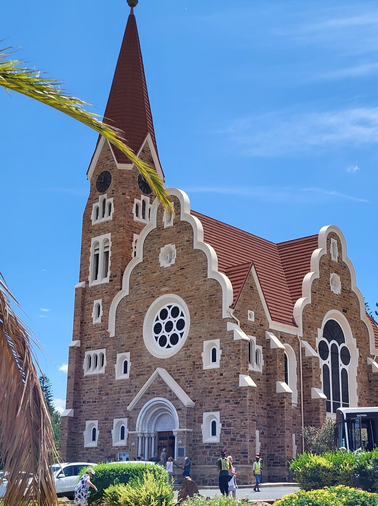 Dann bummeln wir zur Christuskirche, ein Muß in Windhoek, 1907 als Friedenskirche gebaut. Kurz bevor die Kirche nach dem Sonntagsgottesdienst wieder abgeschlossen wird, können wir einen Blick auf die Glasfenster erhaschen.