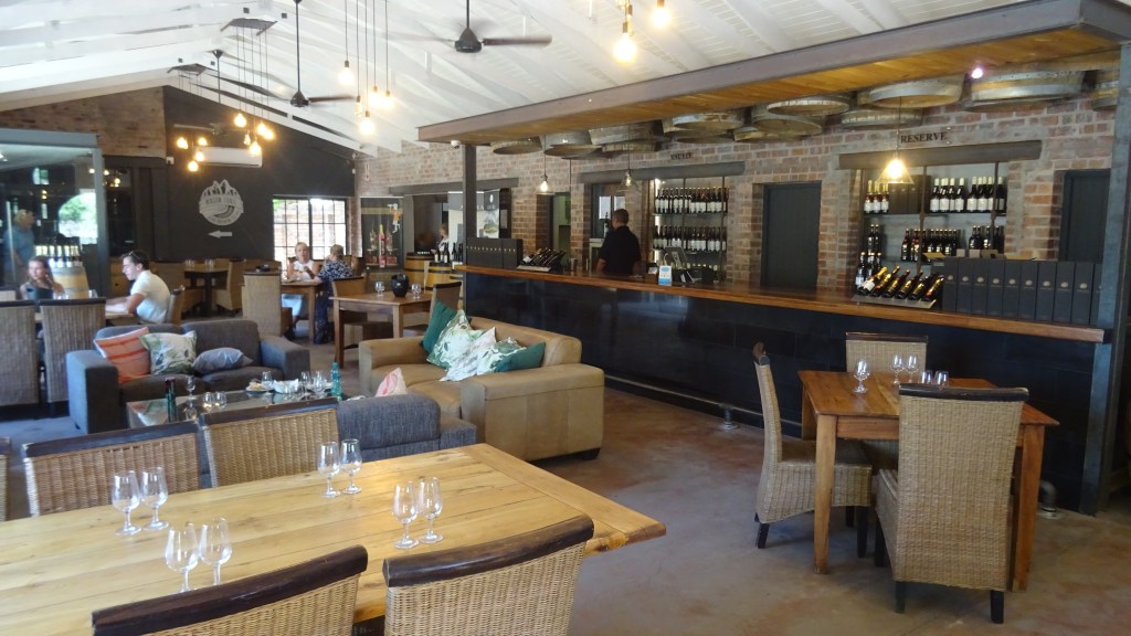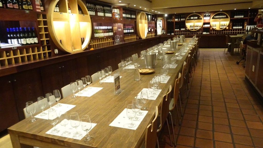 Wir besichtigen die riesigen Holzfässer und die noch größeren Edelstahltanks. Unsere Guide führt uns mit Charme und Witz sachkundig durch die Anlage. Zur Belohnung bekommen wir eine Weinprobe, morgens um 10.30 Uhr! Sechs Gläser sind vor Jedem mit Köstlichkeiten gefüllt. Die Nummer eins schmeckt mir etwas zu sehr nach Mosel ohne das typische Prickeln und ich verziehe mich rasch in die andere Ecke zum Kaffeeshop. Zurück ist die Gruppe schon beim Likör angekommen, schmeckt wie Amarula (von der Konkurenz) bzw. Baileys.