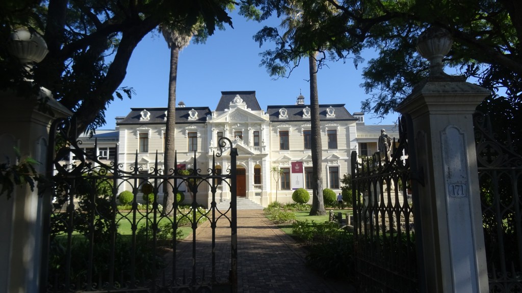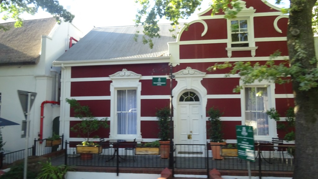 Der letzte Halt auf der Rückfahrt ist in Stellenbosch, ein holländisch anmutendes Städtchen mit schönen alten Häusern. Die zweitälteste Stadt am Kap ist quirlig und wirkt sehr lebendig. 30.000 Einwohner teilen sich die Stadt mit 39.000 Studierenden. Hier an der Uni können gute Abschlüsse erworben werden, die als Türöffner für viele gute Jobs dienen.