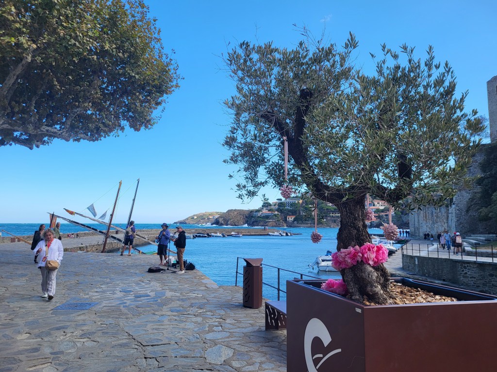 Zuerst bereiten wir heute einen Hefeteig, der im Kühlschrank gehen kann, wohin er will;) Dann radeln wir nach Collioure. Ein netter, malerischer Ort direkt am Meer. Zwei Burgen bewachen den Ort und die zahlreichen TouristInnen, die durch die Gassen der Altstadt bummeln. Es geht uns so gut, mit Blick aufs Meer in der Sonne sitzen und Pastis trinken – französische Lebensart pur!!!