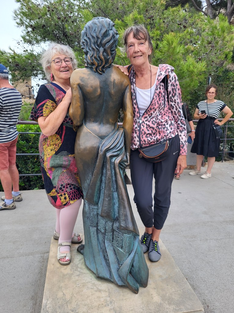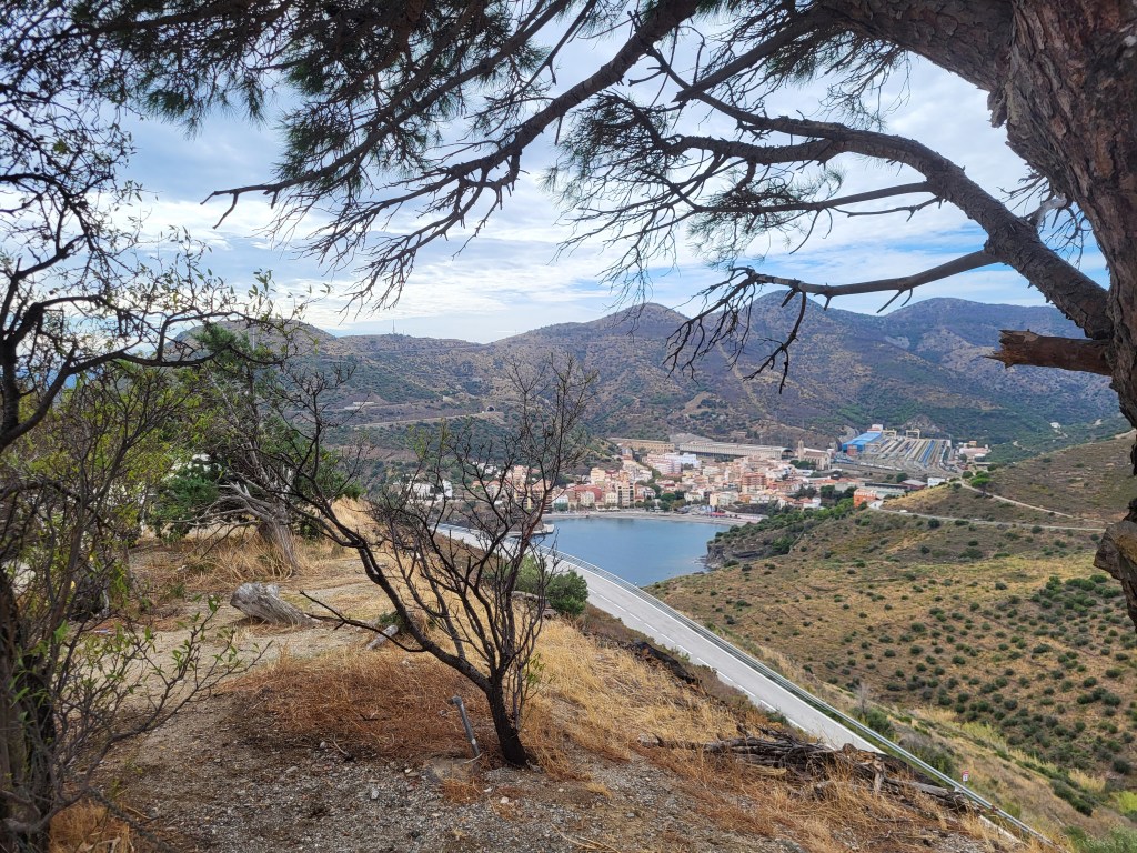 Wir starten gegen 10 Uhr Richtung Figueres. Leider führt uns das Navi nicht wie gewünscht am Meer entlang. So drehen wir eine Ehrenrunde um auf die gewünschte Straße zu kommen. Ein letzter Blick von oben herab auf Collioure und weiter die Serpentinen hoch. Unterwegs erfreuen wir uns an einer Platanenallee. Sehr alte Bäume mit dicken Stämmen säumen die Straße. Fotostops an markanten Punkten. In Spanien angekommen erinnert eine kleine Gedenkstätte in Portbou an Walter Benjamin, den Philosophen. Dieser hat sich aufgrund einer Falschmeldung das Leben genommen. Es hieß 1940, dass die Grenz gesperrt würde. Benjamin war vor den Nazis nach Frankreich geflüchtet und wollte weiter nach Spanien.