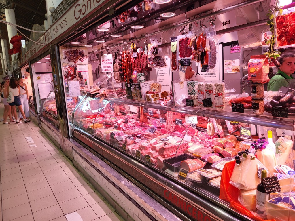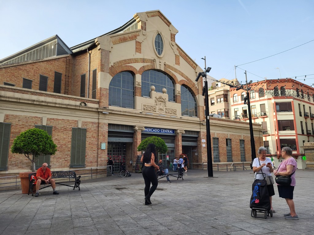 Die Tram fährt uns nach Alicante. Zunächst steuern wir den Mercado an, denn wir wollen den echten Markt erleben. Auf dem großen Platz verlockt uns ein Lokal zum Frühstück. Gestärkt erkunden wir anschlißend das Angebot im Mart. Natürlich gibt es den berühmten spanischen Schinken in allen Qualitäten. 150 € für ein Kilo erscheint uns doch ein wenig teuer. Der Verkäufer erklärt geduldig (auf spanisch) die Qualität und wir kaufen eine Scheibe dieser Kostbarkeit und eine zweite, die nur unwesentlich billiger ist.