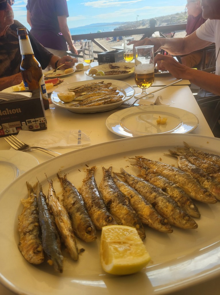 Zunächst müssen wir frühstücken im La Rotonda, dann heißt es nochmal den leckeren Truffelo-Käse kaufen im Mercado. So nebenbei landen vier Thunfischsteaks im Beutel. Diese schleppt Martina im Rucksack durch die Hitze. Der Besuch im Museum der Illusionen ist ein besonderes Erlebnis und begeistert uns. Die Männer wollen sich im Ozeanrace umschauen. Weil wir, Martina und ich, uns nicht für diese Technik so sehr interessieren trinken wir Sangria im Schatten, schließlich sind wir in Spanien!
