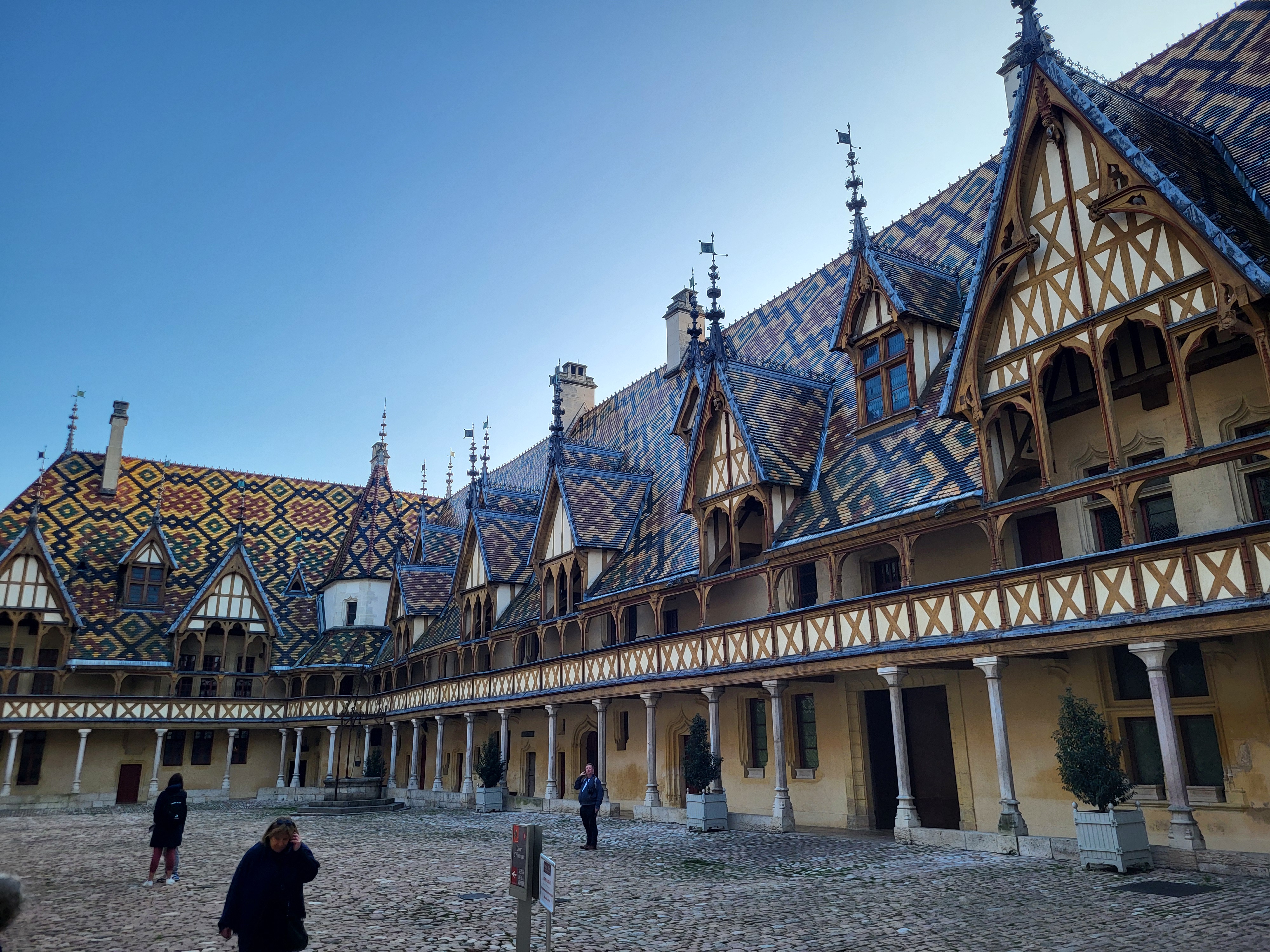 Die herausragende Sehenswürdigkeit des Ortes ist das Hotel Dieu, ein ehemaliges Hospiz aus dem Mittelalter, benutzt bis 1971 und heute Museum. Die authentisch restaurierten Patientensääle geben einen guten Einblick in die Krankenbehandlung früherer Zeiten. Und das ganze Gebäude ist ein architektonisches Highlight. Besonders auch die Dachgestaltung mit farbenfrohen geometrisch verlegten Ziegeln!