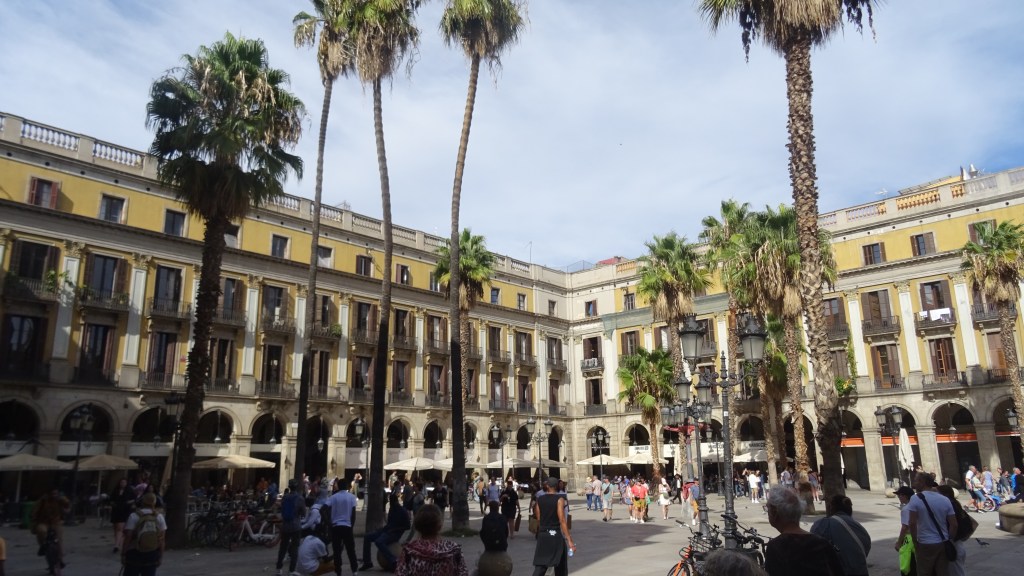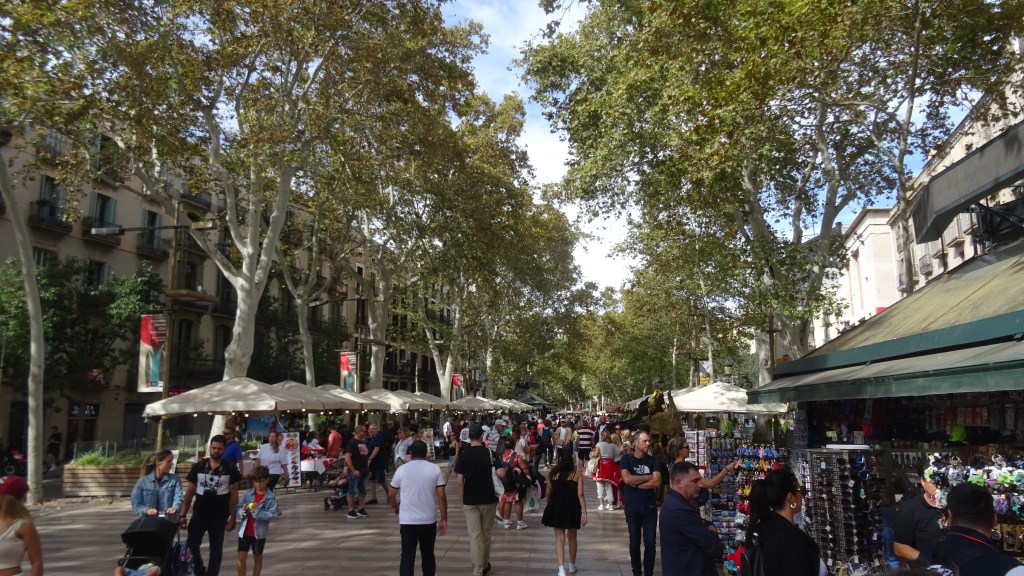 Schnell die Räder ausladen und runter in die Stadt. Die Rambla ist wie immer gut besucht. Leider stört eine Riesenbaustelle die Flaniermeile. Also erstmal einen Blick in den Innenhof ……., dann in die Markthalle. Hier bekommt Manfred seine Austern!